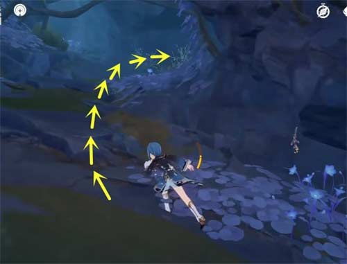 当大家接到“设法与魈取得联系”任务时,会出现任务指示标志,大家跟着标志来到目标地点,缺没有任何反应,其实大家是走反了,任务地点在隔壁洞穴。