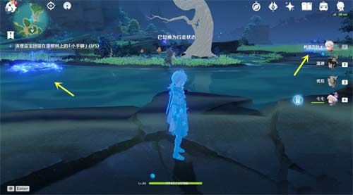 大家在找到神樱树后,开启元素视野,这时,大家就会看见雷樱树周围有2~3个蓝色磁场。