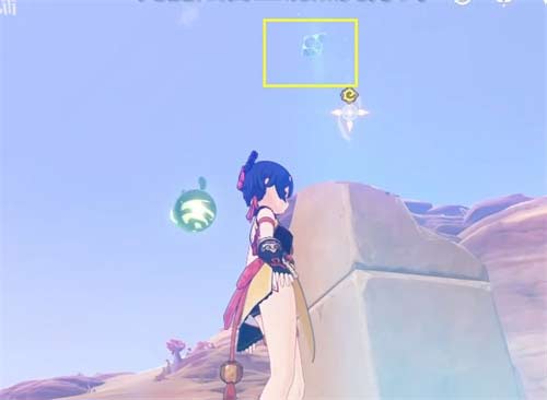 当大家来到解谜地点后,会在周围看见一个放光的机械元件,大家站上去抬头,即可在柱子上看见一个能量体,大家只需要把能量体放入机械元件,即可触发机关。