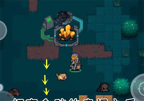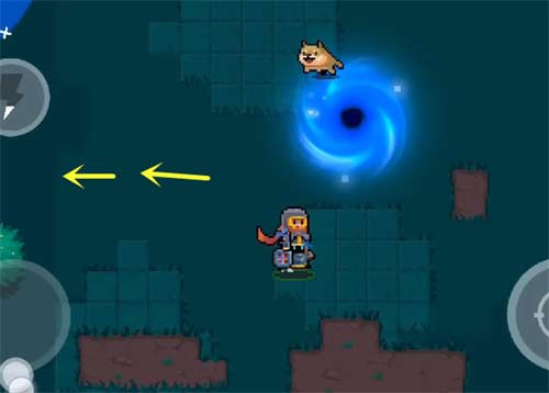 2、清理玩关卡后,会出现一个蓝色的旋涡,大家不要进入旋涡,直接往左侧走,这时我们就会进入到金矿房间。