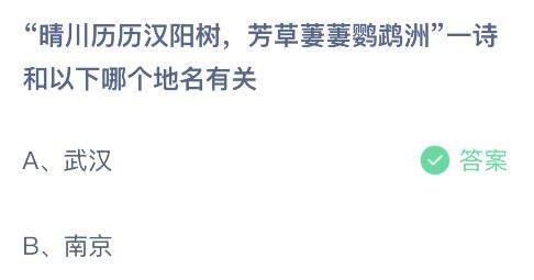 二、晴川历历汉阳树芳草姜萎鹦鹉洲一诗和以下哪个地名有关?