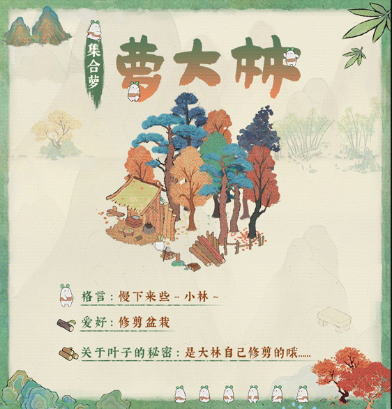 经过完备的筹划和全体萝的努力,萝萝山已逐步呈现出繁荣向上、活力无限的景象。现在,营造组合-萝木七、萝大林、萝小木、萝黄土、萝黑土、萝红土、萝小竹也正式登场,用最传统且有力的方式成为建设萝萝山的中坚力量,随我一睹为快吧。