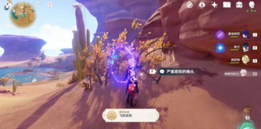 3、打开元素视野,前去图中部位降落进攻,得到草神瞳①