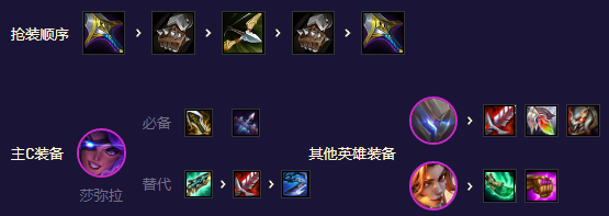 2星沙弥拉加2星盖伦的情况下可以考虑上9大成阵容。9人口可以上EZ增加伤害或者上其他五费卡补强质量双螃蟹双稻草人都可以。