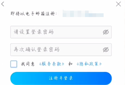 2、然后点击下一步,然后点击同意设置一个登录密码,设置设置完了以后就注册并登录;