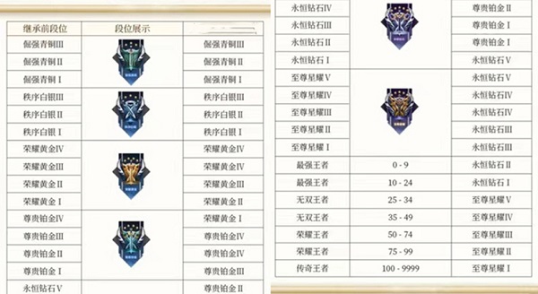 由于S31赛季没有增加新段位等级,所以与上个赛季的继承表一样,青铜、白银段位不变。