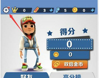 1、首先进入地铁跑酷游戏,点击游戏界面左上角位置的设置选项;
