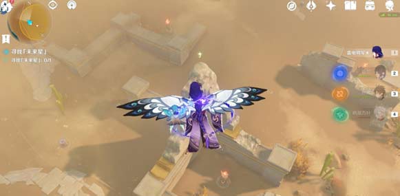 4、往西北方向飞,借助风场直接飞到遗迹顶端。