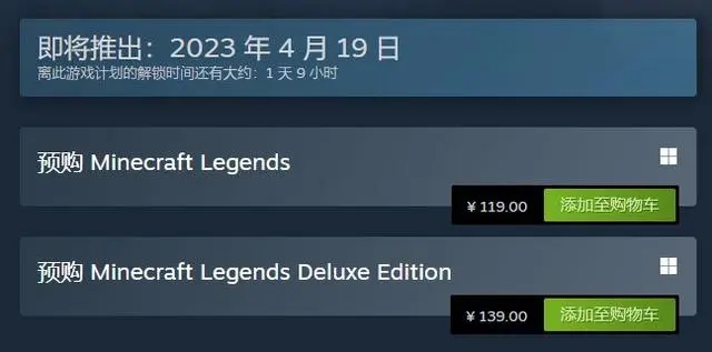 首先《我的世界传奇》普通版售价119元,豪华版售价139元,两者在价格方面相差20元。