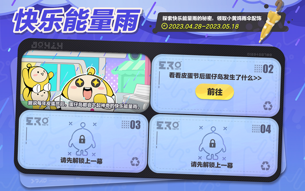 4月28日至5月18日,蛋仔们只要累计登录三天解锁漫画,就可以免费获取小黄鸡雨伞啦~