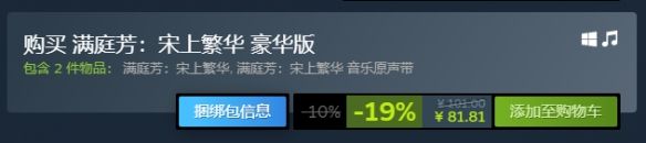 2、庭芳宋上繁华豪华版:国区81.81元(原价101元),包含游戏本体以及音乐原声带。