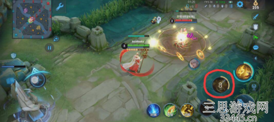 1,首先我们需要对着敌人释放一技能,圈住对面。