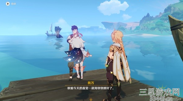 遇到每日委托「鱼钩上的绝景」后,我们在奥摩斯港的码头与凯万对话即可开启任务。