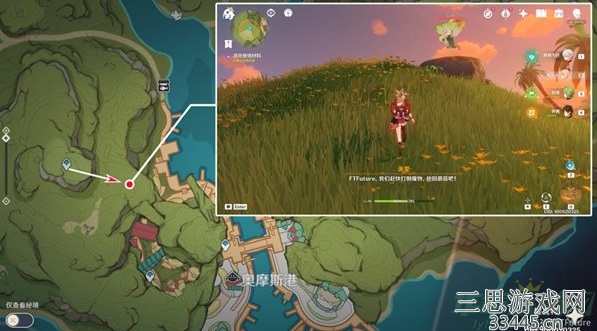 在这个分支中,我们需要爬到图示位置大树上边,拿到3枚「新鲜的鸟蛋」。比较高,各位旅行者爬的时候注意体力消耗。