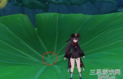 第四个在图中的大荷叶上。