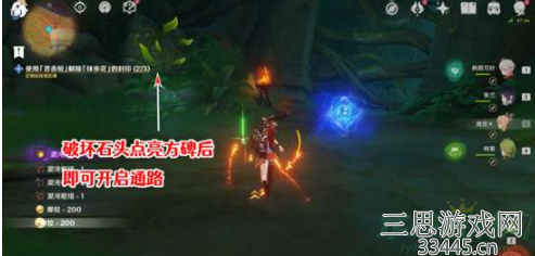 15、破坏石头,点亮草元素碑,送仙子回家。