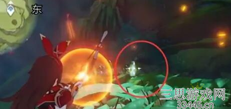 4. 落地后会发现一个石锁机制,需要玩家用火元素破坏它,才能解除遗迹巨像的封印。