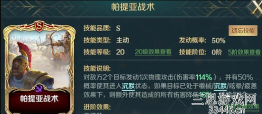 ②帕提亚战术可以队敌方两个目标造成物理功能估计,并且50%的概率沉默目标,如果目标已经处于缴械、沉默、眩晕、疲惫下,可以降低18%敌人的伤害。