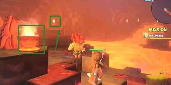 玩家们在熔岩边得按照火把一直走,遇到要过岩浆是会提醒你用冷却的岩浆的方法过去,提示的冷却岩浆就是随时用水浇灭,浇灭之后一会儿会再流动,如果走错路了的话就再浇,即可过岩浆。