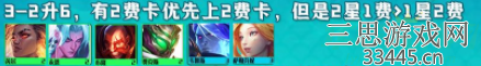 3阶段:3-2拉6人搜索小波品质,努力提升场上英雄品质。尽可能多的恒星质量。第二个最重要的是鬼索的狂暴之刃必须由输出型英雄来完成。适合鬼索狂暴之刃的英雄有: 1费卡:伊泽瑞尔、赛娜 2费卡:厄斐琉斯(除非不推荐2星卖淫) 3费卡:雷恩加尔、韦鲁斯和泽利(不太推荐) 接下来做一个前排的烈日斗篷给前排工人使用,尽量保证前期连胜,高连胜,后期4或5法力。