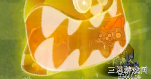 这是在今年的春节活动的新上市贺岁片植物,冷却时间30秒,太阳耗费250,攻击范畴:正前方2-3格范畴