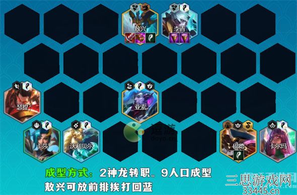 3.阵容9人口成型,由6个神龙牌+敖兴+巴德构成。敖兴和巴德分别带转职。(注意英豪道具一定要给敖兴)