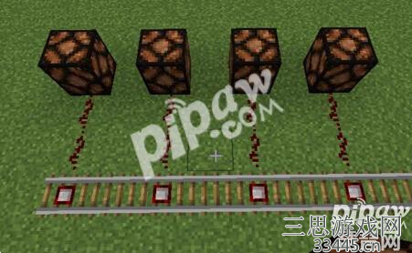6、可以很清楚的看到,铁轨在经过探测铁轨时,会产生红石信号,和压力板非常类似。