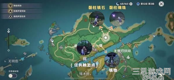 跟随元素视野里的提示前进,【镇石】在副本右下方,红色箭头指示那里进去,需要在上面旁边拿雷种子进入下方雷屏障开启机关,干掉几只机关怪【镇石】就出来了。完成这个任务后,八酝岛区域雷雨停止,天气放晴。