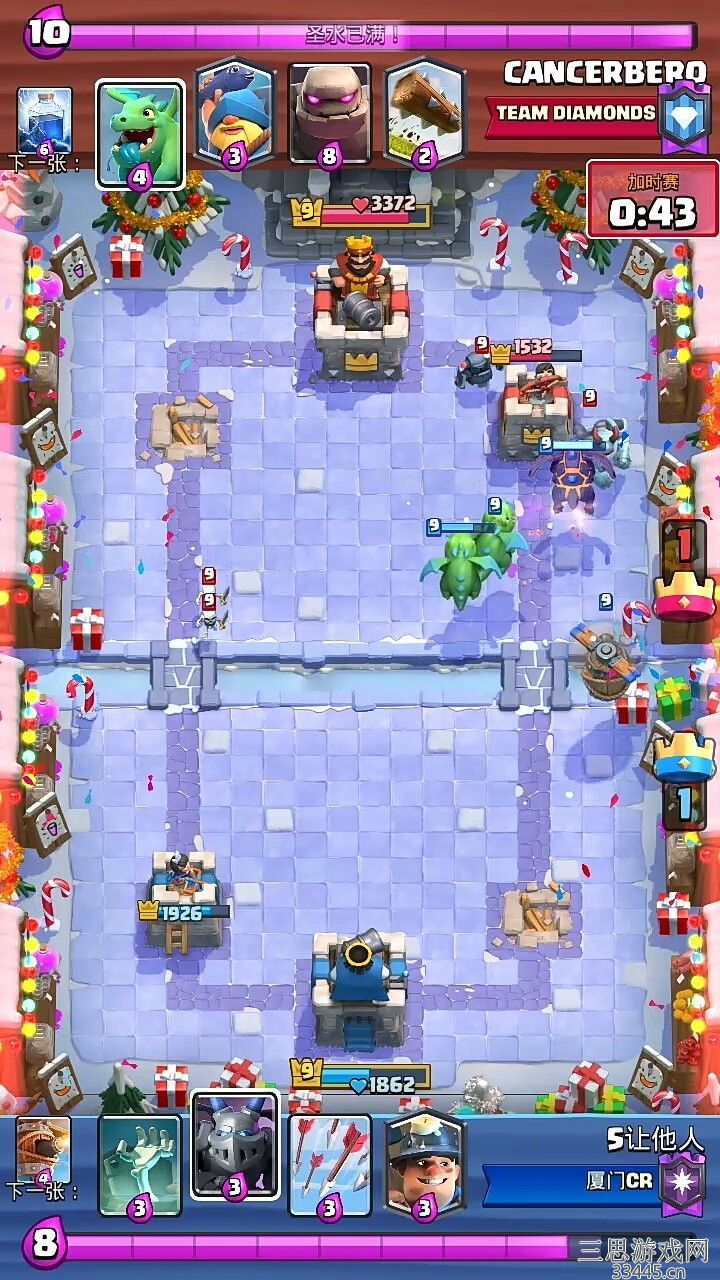 2,双飞机进攻,这样打的前提在于对手没有火球毒药等法术。注意双飞机不要站一起要分开站,特点就是输出高,能更迅速拆塔,飞机的反打能力还是很可怕的。