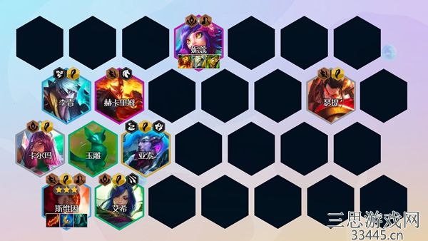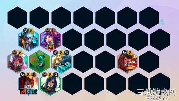 阵容组成:卡尔玛、瑟提、艾希、斯维因、李青、妮蔻、赫里卡姆、亚索