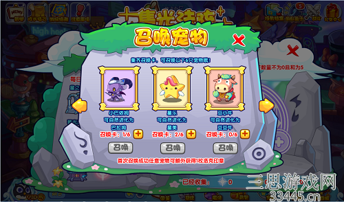第二步:点亮法阵,收集齐全三种星光后,在法阵对应的框内输入星光数量:上限为5,点亮法阵可以领取随机的宠物兑换卡。(三中光芒都要有,且总和等于五)可随机召唤宠物召唤卡(我试过同样的比例,但是得到的卡片不一样,所以随便填比例就好)