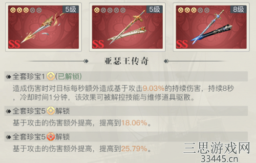 另外,S级以上宝物升到满星时,可以通过觉醒进阶到传世宝物中,得到大量基础属性增加,解锁更多传世属性。