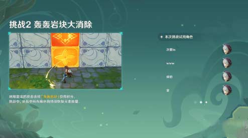 4、可以释放元素爆发,更快速的攻击岩块。达到积分后挑战结束。