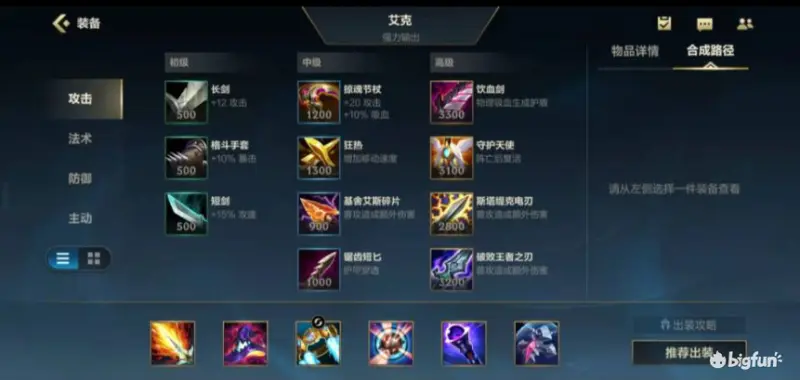 手游里没有打野刀,所以装备选择差不太多。这里推荐第一个大剑出巫妖之祸,80点法强10点技能急速,每用一次技能下一次普攻得到强化并附加法强相关联的伤害,该效果非常契合艾克技能打三环伤害最高的特性,如果恰好叠加到3换的最后一下加上巫妖的效果,可上演血条消失术。