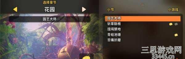 六、第六章花园有5个小关。分别为:园艺大师、斩草除根、擅闯禁地、青蛙池塘、痛苦折磨。