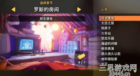 三、第三关罗斯的房间有10个小关。分别为:枕头堡垒、太空旅行、跳房子、火车站、恐龙乐园、海盗的问候、绝世表演、很久很久以前、地牢探险家、女王。