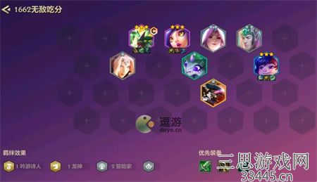 3.如果云顶是新手,且前期大棒多,努努来的早,可以玩一个6玉龙,六个2人羁绊的吃分阵容。(不建议硬玩亚索,抢不到物理攻击装,非常容易暴毙)石傲玉和妮蔻优先三星,努努追三会拖节奏,除非特别胡。